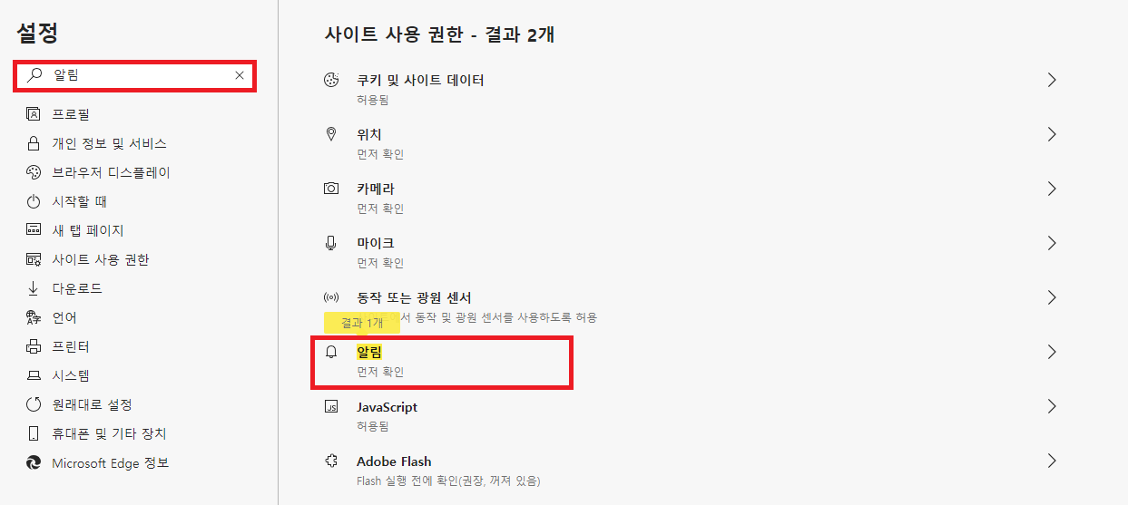 엣지(Edge) 에서 우측 하단 알림 광고 차단