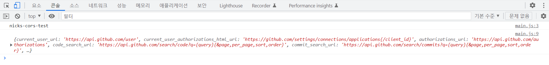 이렇게 url 을 CORS 테스트를 진행하고자 하는 주소로 변경한 다음