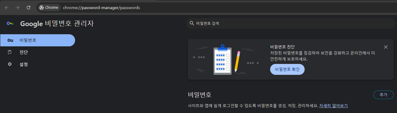 - 확인: 모든 조치를 완료한 후, Chrome 설정의 개인 정보 보호 및 보안 → 안전 확인 페이지에서 **지금 확인(Check now)**을 클릭하여 유출된 비밀번호 문제가 완전히 해결되었는지 확인합니다.